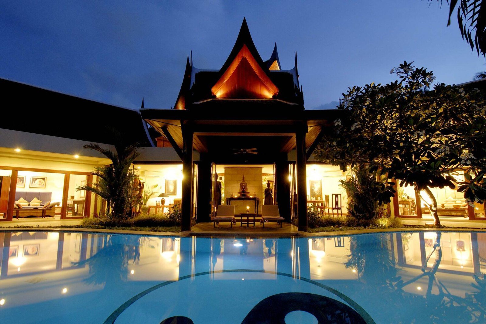Эта роскошная 8-спальная вилла с бассейном в нескольких минутах ходьбы от пляжа Банг Тао на западном побережье Пхукета, является идеальным местом для спокойного отдыха. Она имеет просторную гостиную и столовую открытой планировки с видом на большой бассейн, окруженный прекрасным тропическим садом. Есть бильярдный стол, теннисный стол и комната для развлечений / медиа с большим телевизором с плоским экраном, качественной звуковой системой, игровой приставкой и компьютером.