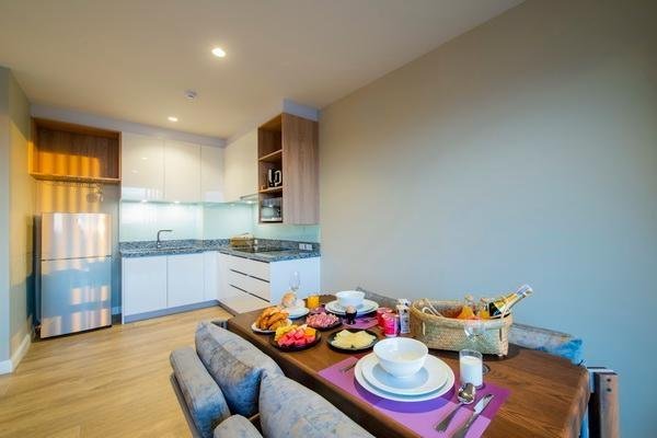 Полулюкс двухместный – 50 кв.м. удобный вариант для пары или семьи. В люксе есть удобная двуспальная кровать, уютная мебель и кухня для самостоятельного приготовления пищи. Из полулюкса открывается вид на горы и сад.